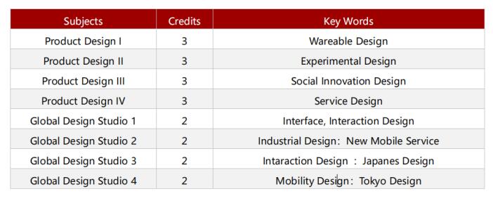 所有课程均采用英文授课,以【演习形式】的授课模式分成全新的设计小组。学生根据老师设置的课题通过进行头脑风暴、实际设计、动手操作,最终完成作品。在学习期间,中国学生也将有同千叶大学在校本籍学生共同学习,互动交流的机会。最终通过考核后,千叶大学会给予中国学生20学分作为该阶段学习的认可,并颁发官方成绩单和结业证书。从2022年度起,项目从千叶县校区移至千叶大学位于东京都内的全新设立的墨田国际研究校区。