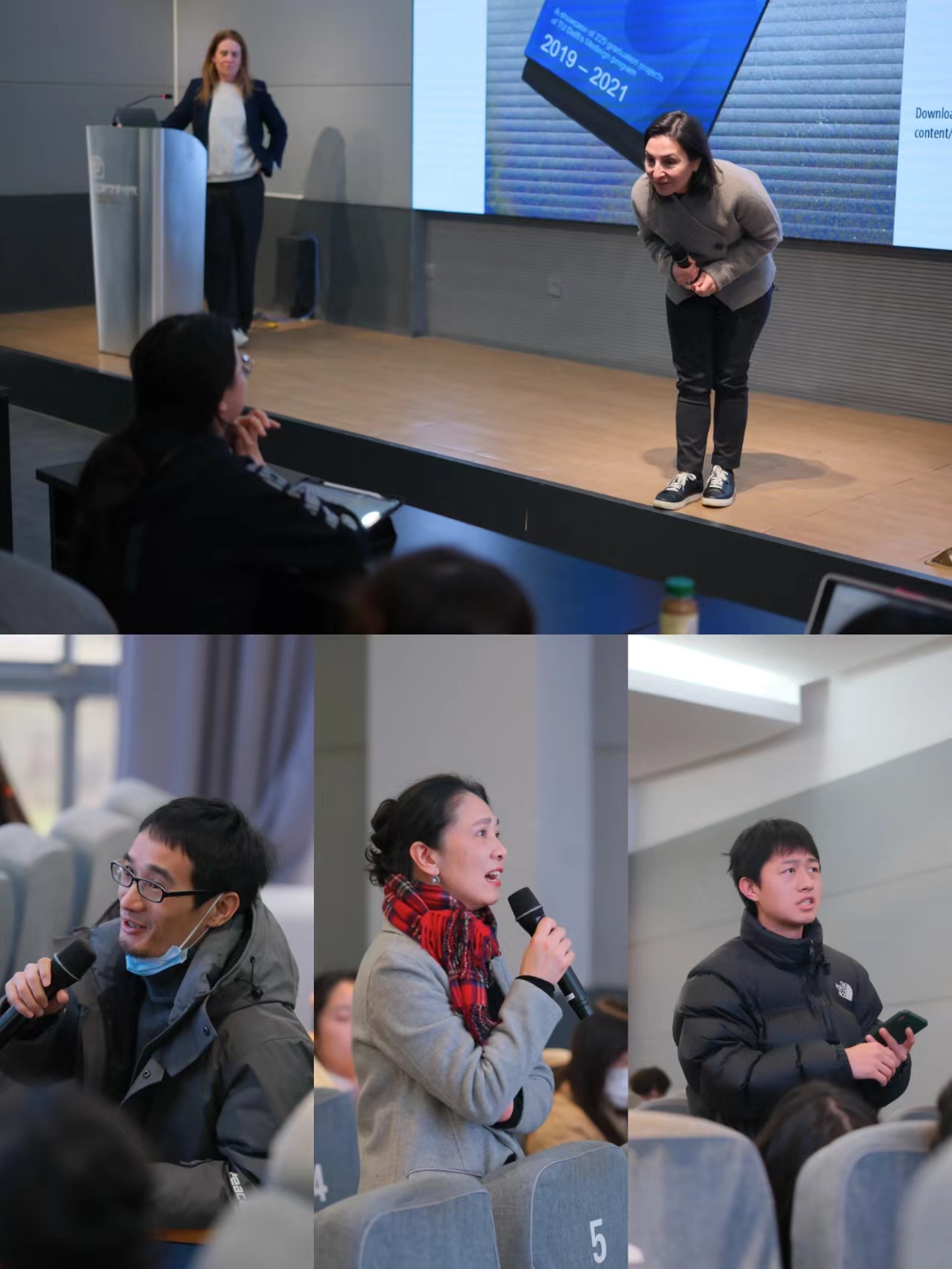 讲座现场两位嘉宾还与到场师生进行了热烈的互动交流,探讨了如何为数字化患者体验进行设计、设计的工具与流程、设计在医疗健康中发挥的作用及其未来发展趋势等问题。