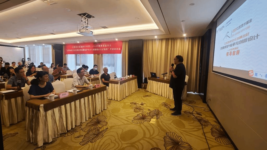 刘佳首先介绍了本次江苏艺术基金人才培养项目的基本情况。项目立足江苏区域优势,以历史文化名镇名村的风貌保护传承和创新设计为核心内容开展人才培育,以艺术创作和设计创新的力量助力“十四五”时期国家新型城镇化发展和乡村振兴战略,弘扬中华优秀传统文化、延续江苏地域文脉,传承工匠精神,增强中华文化自信,为努力构建新时代、新江苏历史文化名镇名村人居环境做出贡献。项目旨在培养具有家国视野与乡土情怀、人文素养与艺术眼光、创新精神与责任担当、根植地域且面向未来的、从事传统村镇风貌保护传承与创新设计实践的专门人才。