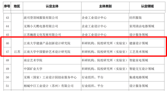 首批中国工业设计协会创新设计研究院认定名单