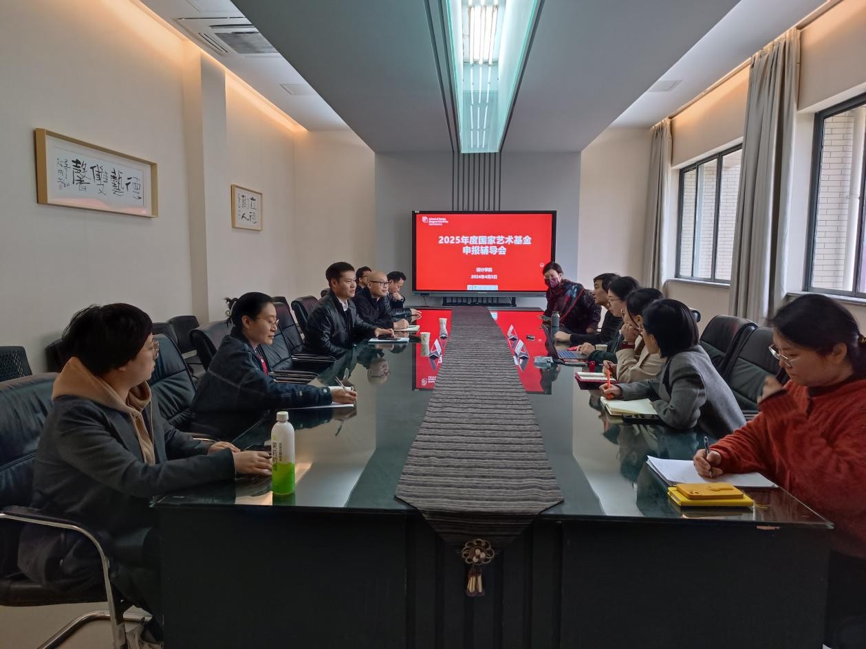 会议邀请到了江苏省第十六届哲学社会科学优秀成果奖二等奖获奖者邓嵘教授、2024年度国家艺术基金立项者李振宇副教授、章洁副教授进行辅导,社会科学处副处长沈张帆到会指导,本年度国家艺术基金申报教师、成果奖预申报教师及部分青年教师参与了本次辅导活动。