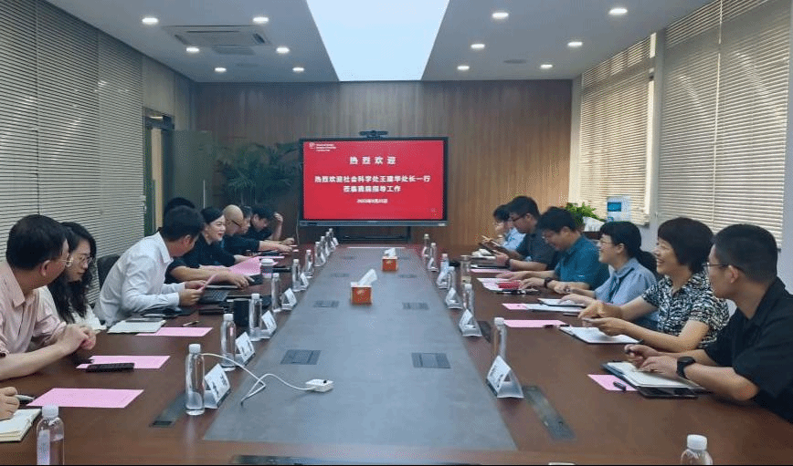 9月25日上午,社会科学处处长王建华、副处长杨恋恋、沈张帆,综合科科长潘泳、基地科科长刘凡、项目科副科长孙蕾一行来访天美传媒