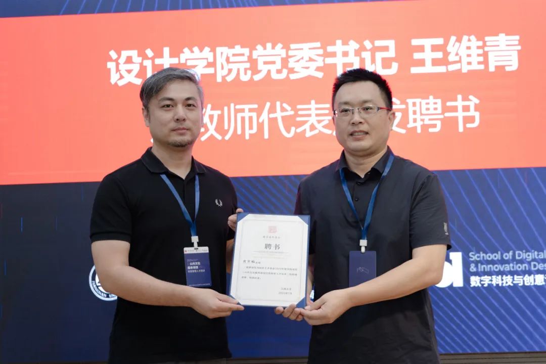党委书记王维青为教师代表颁发聘书,全场响起了热烈的掌声,共同见证这一时刻。陈晨老师作为学员代表发言,他表示自己从事文物与博物馆学研究近二十年,深知博物馆作为公共文化场馆的独特地位,其内容丰富多样,堪称文化殿堂。他希望能够凭借有效的运营让博物馆的珍贵资源更好地服务于公众,实现文化的传承与创新。最后他满怀热忱地展望了与其他学员共度的未来三十天学习之旅,也憧憬着这段时光能孕育出深厚情谊。