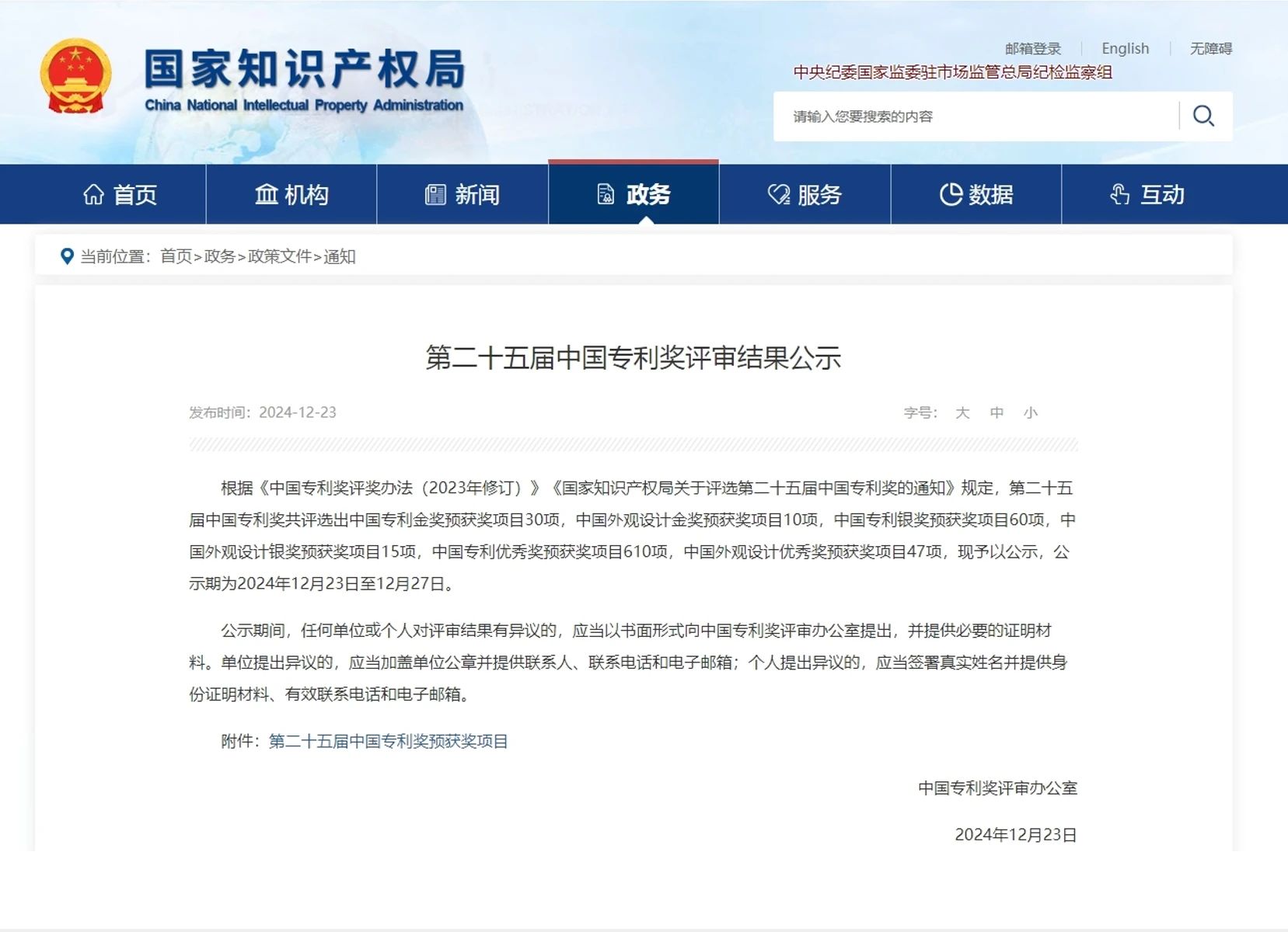 日前,第二十五届中国专利奖评审结果公布,天美传媒