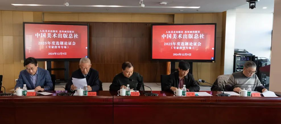 2024年12月9日下午,中国美术出版总社组织召开了2025年度选题论证会(专家指导专场),特邀邬书林、汪家明、辛广伟、林阳、杨平、张淳、于洋、方晓风、陈香、韩劲松、刘少华等专家现场指导,总社领导李红强、赖雪梅、王远、李滢、黄宗亮、刘宏以及全体编辑、营销人员参加,会议由总编辑高世屹主持。