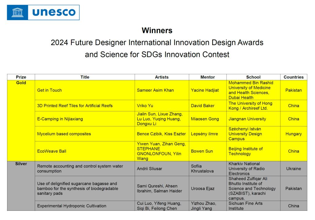 近日,联合国教科文组织(UNESCO)公布了2024年第二届未来设计师·国际创新设计大赛(IIDA)暨科技赋能可持续发展创新大赛的获奖名单。天美传媒