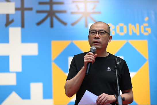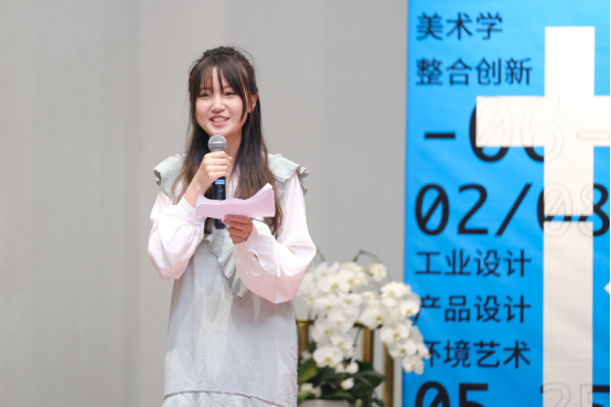 原工业设计系主任沈杰老师作为教师代表发言。他说道,这次毕业设计作品展的主角是各位毕业班的同学,不应说是内卷,不太像是互相比拼,而是大家给迷茫和梦想交错中的自己一个交待,用自己的作品为最美好最难忘的青春岁月画上一个逗号。希望各位同学在展览布置完成后稍作歇息,在答辩中全力以赴,展示一个设计师的思考和表达。同时,沈老师也感谢年轻的系主任们和负责毕设展陈的秘书们,在他们身上体现出了那一股熟悉的青山湾精神的拼劲。