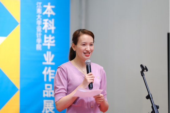 魏洁院长为开幕式致辞。魏院长对各位嘉宾、领导以及退休老教师们的到来表示热烈的欢迎。她提及,本科毕业作品展既是对本科教学质量的检验,也是同学们学习成果展示的大舞台。毕业作品展是本科教育的全景式展示,是优化人才培养体系的重要载体。通过毕业展,学院能够获取更多、更直接、更重要的人才培养质量的反馈,这是学院开展人才培养方案修订的重要参考因素,也是学院本科教学改革的重要驱动力量。这次展览是2021届的毕业生们对自己大学四年学习的回顾和总结,也是大家走向未来的新起点,希望大家在未来能够“以梦为马,不负韶华”,用设计书写奋斗的人生,用设计铸就无悔的青春,用设计创造美好的未来!