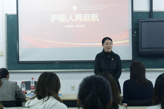 活动最后,魏洁院长寄语。她强调学生拿起画笔“画”说党史故事,能够很好地将党史学习和专业相结合,找到适合自己的学习方式,形式新颖活动有很强的吸引力和表现力;通过同学们的分享也能够感受到同学们是经过研读细品,挖掘中国共产党带领中国人民建设祖国的伟大历程中的故事、人物、事件,希望同学们能够在党史故事学习过程中汲取智慧、坚定信念、振奋精神;希望通过“护船人”勋章授予,传承红色精神,赓续精神血脉,厚植爱党爱国情怀,承担设计为民使命。