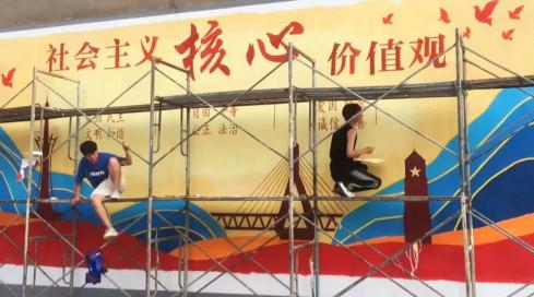 奋斗是青春最亮丽的底色,行动是青年最有效的磨砺。部分团队成员在暑期参与了安徽省亳州市涡阳县开展的文明城市墙绘志愿服务活动。团队成员与参与此次活动的30余名大学生志愿者一起,冒着炎热酷暑走上街头进行墙绘,为美化城市、提高人民生活品质贡献了自己的青春力量。