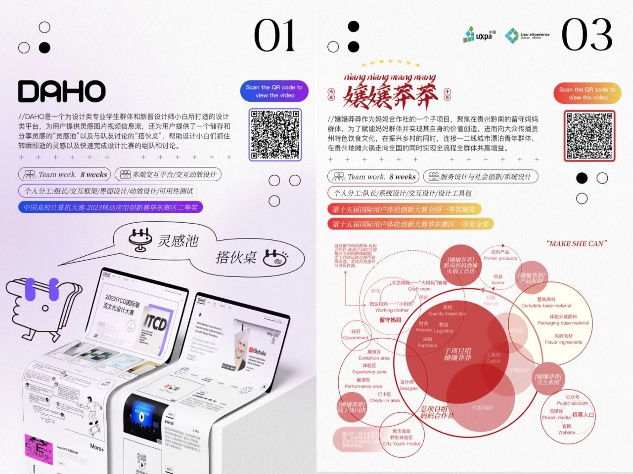从上海分赛区到深圳全国总决赛,团队带着DAHO一路晋级:小羊的逻辑框架、赵姐的CMF视觉、丁子的健康设计视角、边子的VR技术加持、叶子的用户体验洞察,让每个项目都成为"五边形战士"。获第十八届中国好创意设计大赛最高奖的《嬢嬢莽莽——品牌与服务设计赋能贵州留守妈妈》,背后是凌晨三点的Figma协作文件、是边子调试VR代码时伙伴递上的咖啡,是赵姐为优化CMF方案翻遍的200多页材质样本库。