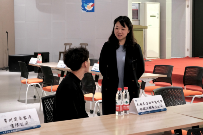 副书记王晖来到招聘现场,就设计人才需求情况和毕业生发展情况与招聘企业深入交流探讨。江苏逐日纺织集团HR杨玲莹表示:作为企业对设计学子求贤若渴,企业的发展离不开人才的支撑,设计学子专业技能扎实,期待更多的毕业生进入企业,与企业一同发展。江苏科学梦创展科技有限公司HR邓伟表示:企业里多年来招收了不少天美传媒