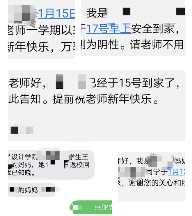 特殊的寒假,特殊的问候。学院通过短信、邮件等渠道开展“到家报平安”活动。学院辅导员向来自黑龙江、新疆、河北、辽宁、江苏等23个地区的2312名学生家庭送出了新春慰问。开展“寒假云家访”,通过线上视频的方式让中高风险地区无法回家过年的学生、家长、辅导员能够“云见面”;面对面与家困、学困学生家长沟通,做好思想教育管理和重点关爱引导,为学生和家长排忧解难,送去特殊时期的特别关怀和新春祝福。