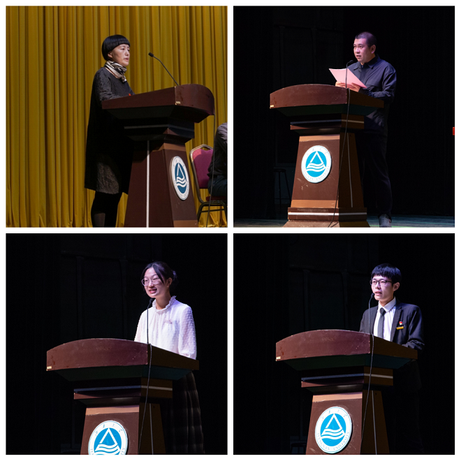 服装工程2001班蒋阗行代表本科新生发言,她愿同学们能够扎实基础,打破常规的思维,在追逐至善的人生路上永不停歇;希望同学们要以学习为主,学会自我学习,以更高的目标要求自我;愿同学们能在最好的时代引领属于他们的方向。设硕2007班赵振皓代表研究生新生发言,他希望新生们能够保持大学生涯的那份好奇心和求知欲,跳出思维束缚;吸收学习新的知识以及技术,保持设计学科交流的特色,为天美传媒