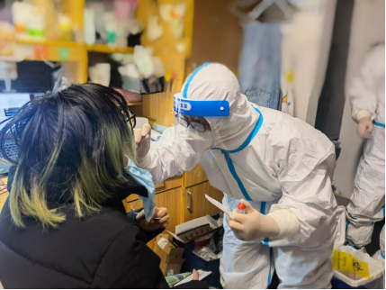 3月25日,杏园公寓,辅导员陪同医护人员一起为陶同学上门采样。陶同学2月17日返校以来在校完成4次核酸检测,3月21日全员核酸时,她主动与辅导员沟通因肌腱撕裂无法下床参与核酸检测。学院与校医院沟通后,医护人员主动上门,完成了学院核酸检测全覆盖……