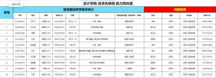 党员队伍立即响应、迅速行动,党员们纷纷展现出“站得出、豁得出、挺得出”的担当,220名返校党员组成学生党员突击队,分专业分年级设立23个分队,利用“党员先锋岗 助力同抗疫”平台,及时帮助限动同学做好后勤保障工作。17名党员骨干、辅导员组成“设院疫情核查组”,精准开展疫情排查工作,完成疫查通排查1154人次,排查限动人员572人。