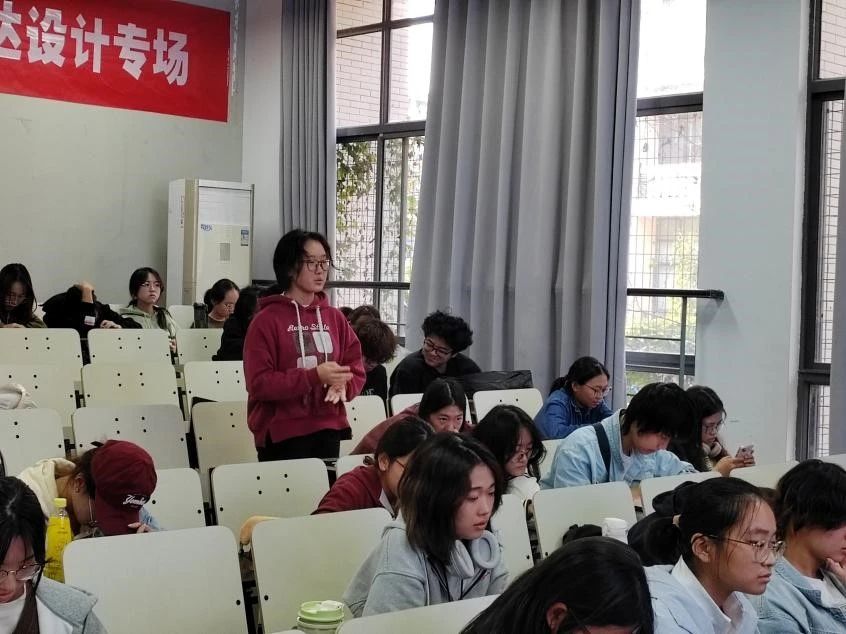 学长夏晨骁、学姐杨丽睿分别从保研与心理规划等不同方面慷慨分享,将自己的学业经验与学习方法倾囊相授。夏晨骁学长以自己的几个作品为引入,介绍了个人学业经历,保研流程,帮助同学们了解各个学期需要做的事情。并且为同学提出了做设计时的建议。在学习心态方面,他建议同学们注重信息的归纳整理,通过正视自身的局限性激发学习动力,更好地去解决问题。杨丽睿学姐分享了自己学习中的心得体会。在学业方面,她呼吁同学们尽早明确个人目标,积极主动了解相关规则,留心规则变动。珍惜身边的学习资源。而在心态方面,不断努力提升核心竞争力的同时,她也提醒大家重视劳逸结合,学会通过放松转换思维。