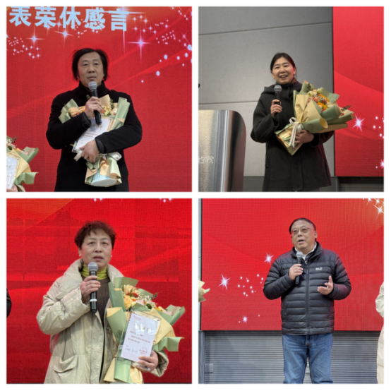2023年荣休教师名单。全场教职工以热烈的掌声向荣休教职工们多年来为教育事业和学校建设所作的无私奉献致以最真挚的敬意,表达深深的祝福和感谢之情。接着,王维青、魏洁为到场的每一位荣休教职工颁发荣休证书并合影留念。青年教师代表向荣休教师代表送上鲜花和祝福。到场的4位荣休教师饱含深情地回顾了自己几十年的教育生涯,分享了自己从梅园到青山湾再到蠡湖畔工作的点点滴滴,表达了对学院关心厚爱的感谢之情和对学院高质量发展所取得的成就自豪感,展望了自己对退休生活的向往。他们说,退休不是人生的终点,将怀揣朋友的祝福、亲人的鼓励迈向更美好的明天,同时也将继续秉持对教育事业的笃定和始终如一,发挥余热、贡献力量。最后,王维青用“感谢”“希望”“祝愿”三个词表达了对光荣退休的教师的感激之情。感谢他们坚守“为党育人、为国育才”的初心使命,选择世界上最高尚、最阳光的教育事业;希望他们“退而不休”,能一如既往的关心和支持学院发展,为学院持续高质量发展献计献策;祝愿荣休教师们在退休之后能以“竹杖芒鞋轻胜马,一蓑烟雨任平生”和“一壶浊酒喜相逢,古今多少事,都付笑谈中”的恣意洒脱享受生活。
