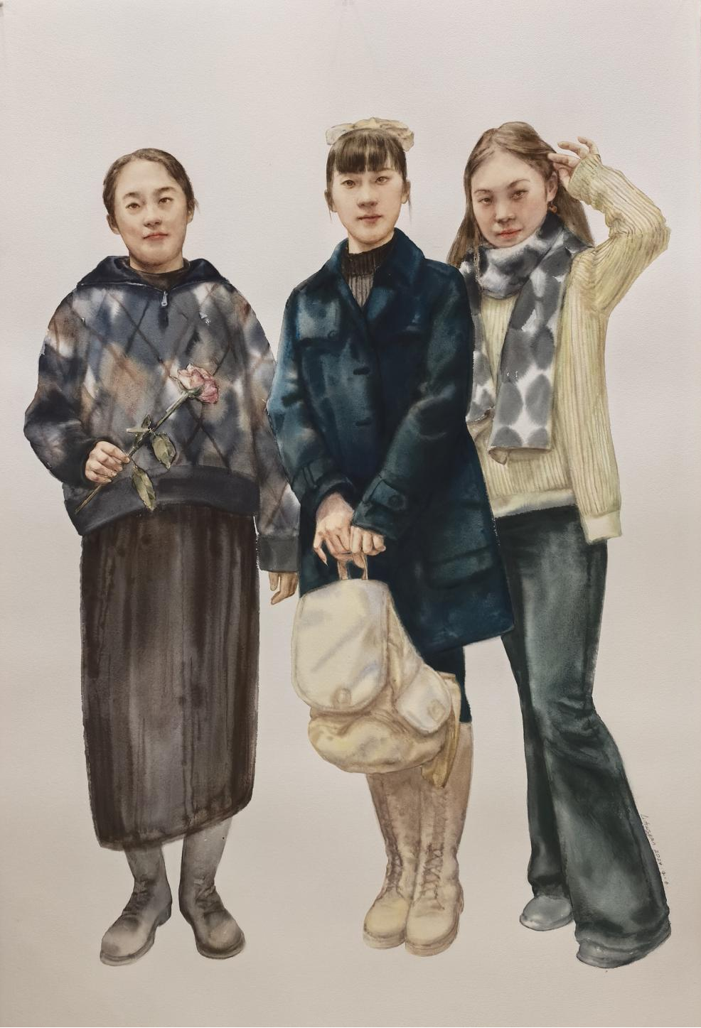 学生新时代的年轻面孔和青春洋溢的精神面貌。水彩的柔和质感与丰富色彩让整幅作品充满了生机和活力;作品在水彩人物画表现上进行了大胆的尝试,运用了中国画的线条,平面式的主观处理,作品不仅彰显了水彩的水色淋漓,同时作者进行了中西融合,将墨色运用于水彩之中,赋予了作品一种独特的情感表达方式。每一笔都用心描绘,传达出对青春和创造力的理解。作品中的清新氛围象征着无限的可能性和梦想的追逐,让人仿佛置身其中,感受到天美传媒