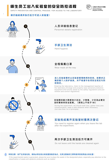 大楼与实验室安全和疫情防控管理工作的通知》、《师生员工出入实验室的安全防控流程》、《疫情防控期间出入人员信息登记表(教职工/学生)》等文件,提出涉及实验室环境、进出、操作和安全管理的多项要求,作为学校实验室管理和防控工作总体方针的延伸、拓展和细化;并围绕当前的关键时间节点,要求在所有实验室的重点区域张贴安全和防控管理条例、防疫提示、宣传海报等,切实做到了学院实验室整体工作的全面动员、全面部署和全面加强。