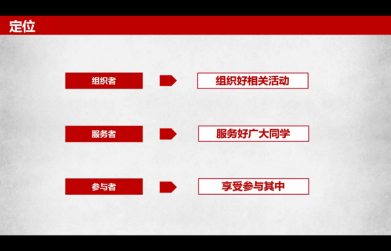 学生对潮流和新鲜事物的敏感度,结合当下和各学院的力量,在形式和内容两个方面进行创新。活动结束后,做到“学有所思、思有所悟、悟有所行、行有所效”。