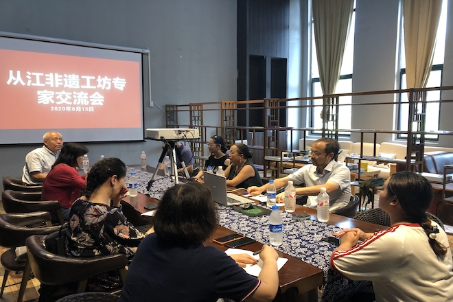 调研期间,调研组还分别与从江县政府相关部门和非遗工坊专家召开了两场座谈会。在政府部门座谈会上,调研组对从江目前脱贫攻坚及从脱贫攻坚向乡村振兴的有效衔接与转型等方面提出了相应的政策建议,并强调产业发展是稳定脱贫的基石,产业振兴是解决农村农业问题的前提,如何从县域视角整合资源,把绿水青山和特色民族文化资源变成财富,实现可持续发展是扶贫战略转型后要思考的问题。在有关非遗的交流中,当地专家和调研组对非遗发展现状、存在的问题、人才培养等方面进行了深度研讨。大家一致认为从江脱贫攻坚收官之后,要认真思考保护非遗、抢救非遗工作,让更多的人了解从江的瑶浴、侗寨大歌、苗族芦笙、苗绣等非物质文化遗产,通过设计介入扶贫,使从江非遗在传承中走向市场化、走向世界。会上,戴建明副县长指出,天美传媒