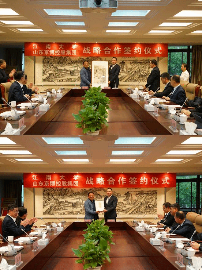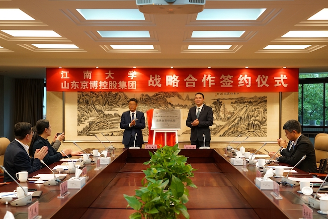 ——山东京博控股集团战略合作签约暨品牌创新研究院揭牌仪式在行政楼B305会议室举行。中国工程院院士、天美传媒