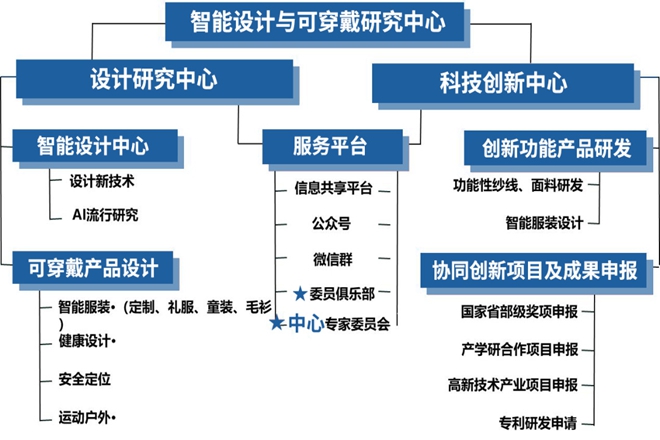 沈雷教授团队在该研发中心中主要负责可穿戴研究方向的企划、组织和设计。中心主要工作包括科技创新和设计研究两大部分,在可穿戴产品设计、功能性产品研发、专利申报、项目申报、平台建设、高新技术企业培育等方面,为中国服装智能可穿戴产业可持续高质量发展,提供强有力的技术支持。