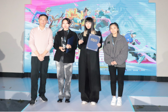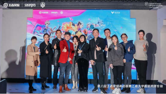 服装系沈雷教授、服装系主任苏军强副教授、来自腾讯互娱的负责人蔡昆女士和吴应雯女士,作为专场的评委嘉宾,共同见证了服装系同学们的优秀成果。
