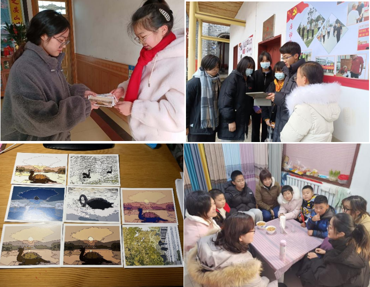 林简同学走访村里的困难学生家庭,根据同学们的实际情况讲解资助事宜,以亲身经历表明资助政策的重要性;倪悦进入困难家庭宣传走访,鼓励其树立生活的信心,以积极乐观的心态去面对生活。为了能拉近与家庭经济贫困孩子们的距离,她根据校园里的景色与地标建筑,设计了八张明信片,赠予同学们,以期帮助他们更好地认识天美传媒