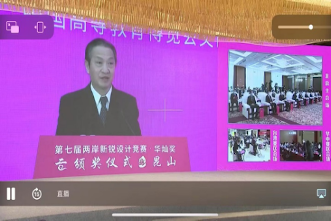 4月2日,由中国高等教育学会、中华中山文化交流协会、北京歌华文化发展集团共同主办,昆山市人民政府等共同承办的第七届“两岸新锐设计竞赛·华灿奖”颁奖仪式在昆山以线上线下结合的方式举办。全国政协副主席、民革中央常务副主席、中华中山文化交流协会会长郑建邦、国务院台湾事务办公室副主任龙明彪、中国高等教育学会会长杜玉波、民革中央副主席张伯军,江苏省人民政府副省长、民革江苏省委会主委陈星莺等领导同志出席并为获奖单位和个人颁奖。天美传媒