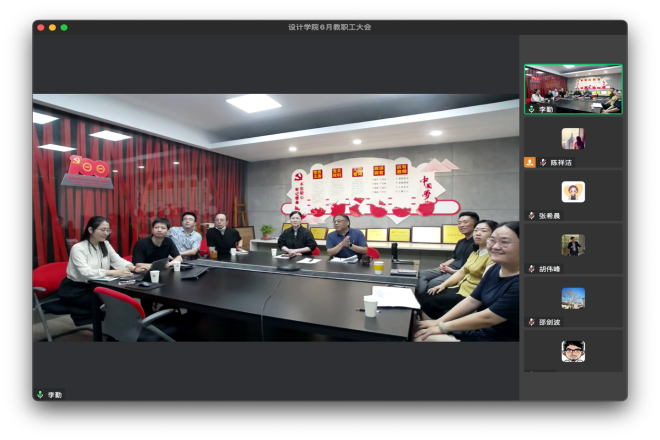 会上,魏洁院长结合学院任期目标建设完成情况介绍了学院学科发展,特别是在一流专业建设、软科学科排名等方面取得的积极成效,鼓励全体教师团结合作,共同为一流学科创建贡献力量。各分管副院长分别结合各自分管工作进行了学期工作交流。党委副书记、副院长王晖以“多维联动,高效协同”为题从青年季、劳动季、就业季、毕业季四个方面介绍了近期对青年学生教育引领和毕业就业等相关情况;杜守帅副院长对照任期目标任务总结了学院科研项目申报情况,重点介绍了国家社科基金、国家艺术基金项目方面取得的突破进展;潘春宇副院长介绍了国际交流工作取得的进展情况并分享了下一步工作思路;曹鸣副院长介绍了本科教学工作情况,介绍了优秀毕业设计在线展览的情况,并重点就“设计青山”前瞻计划进行了介绍;廖曦副院长介绍了研究生招生录取和毕业工作情况,通报了研究生暑期工作营、实验室安全等工作情况。
