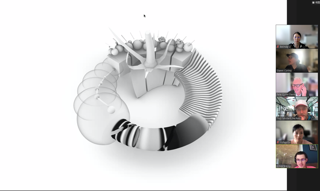 7月1日,四组同学分别展示了5天的设计成果,即包含16组变量的四个以甜甜圈为原型的数据模型。各小组成员跨专业跨语言团结协作,在主题的选定、变量的聚焦与提取和数据模型的转化阶段都展现出了充分的想象力和行动力。小组之间也在主题创意和数据理解上进行了广泛讨论和合作。Team1与Team4分别交换了“早餐”与“咖啡”两个主题的数据。Team2与Team3围绕“睡眠”与“番茄”两个主题开展了创意构想。团队成员各自发挥优势,步步推进模型,将数据对人们生活的影响生动具象地表现在三维模型上。双方教师对各组同学在本次夏令营中的积极表现给予了高度赞扬,并对同学们的合作与创意予以高度肯定。