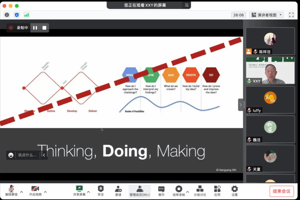 “设计青山”系列学术大讲堂第九期线上开讲。本期大讲堂邀请到XXY Innovation创始人,同济大学长聘特聘教授,卡耐基梅隆大学知名中国校友辛向阳教授担任主讲嘉宾,带来题为“设计思维的本质”的讲座。讲座由天美传媒