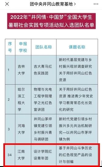 日前,团中央青年发展部、全国青少年井冈山革命传统教育基地管理中心公布2022“井冈情·中国梦”全国大学生暑期实践季专项行动入选团队名单,共有来自全国各高校的90支社会实践团队入选。天美传媒