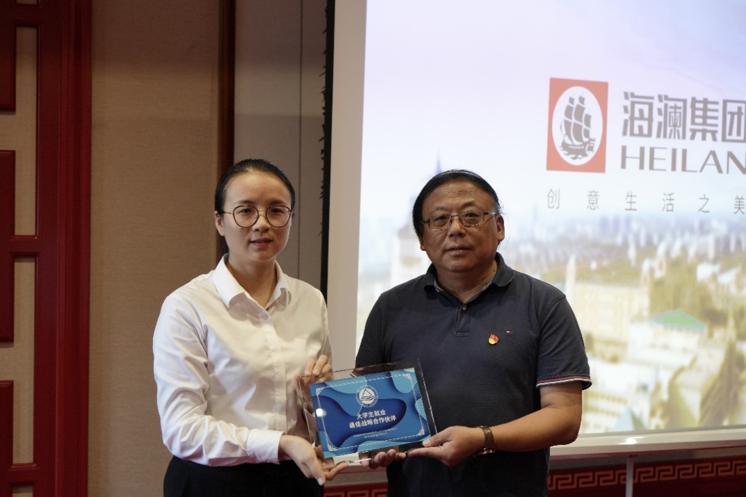 邱建平授予企业“大学生就业最佳战略合作伙伴”纪念牌
