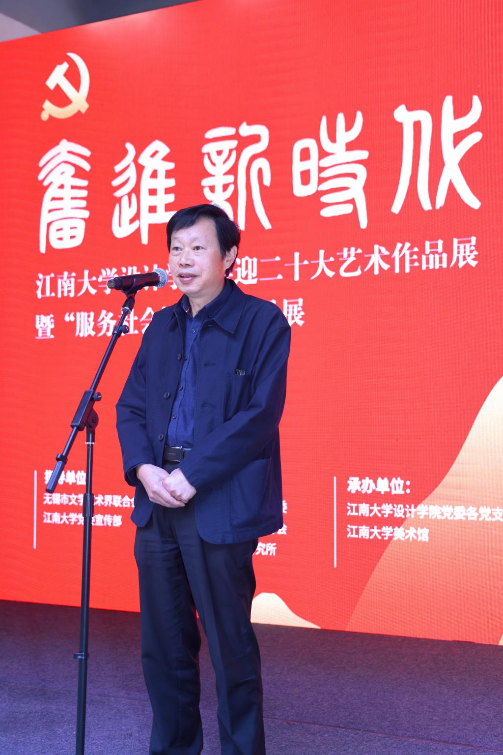 正处在建设一流学科的关键时期,借此机会,与各位嘉宾分享三点体会:一是坚持立德树人,做强国先锋的“铸魂者”,二是守好文化阵地,做文化自信的“传播者”,三是紧扣国家需求,做设计为民的“实干家”。站在新时代的风口,希望大家立足中国大地,讲好中国故事,展现中国风貌,真正让设计“服务国计民生,勇担时代使命”,为实现中华民族伟大复兴贡献更多设计智慧和设计力量!以实际行动迎接党的二十大胜利召开!预祝本次展览取得圆满成功!