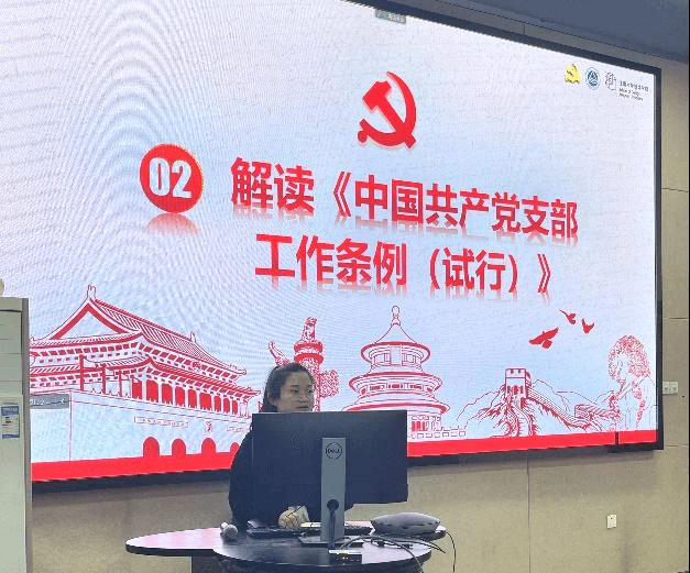 会议伊始,辅导员马倩如为与会人员解读《中国共产党支部工作条例(试行)》。她重点介绍了与高校学生党支部关系最为密切的党支部功能定位、职责、工作原则、基本任务、工作机制、组织生活和支部委员会的建设等七个方面,强调党支部担负着直接教育党员、管理党员、监督党员和组织群众、宣传群众、凝聚群众、服务群众的职责,是党组织的重要基石,希望各位支部委员能够学深悟透《中国共产党支部工作条例(试行)》的各项内容,不折不扣的做好支部工作,充分发挥党支部的战斗堡垒作用。