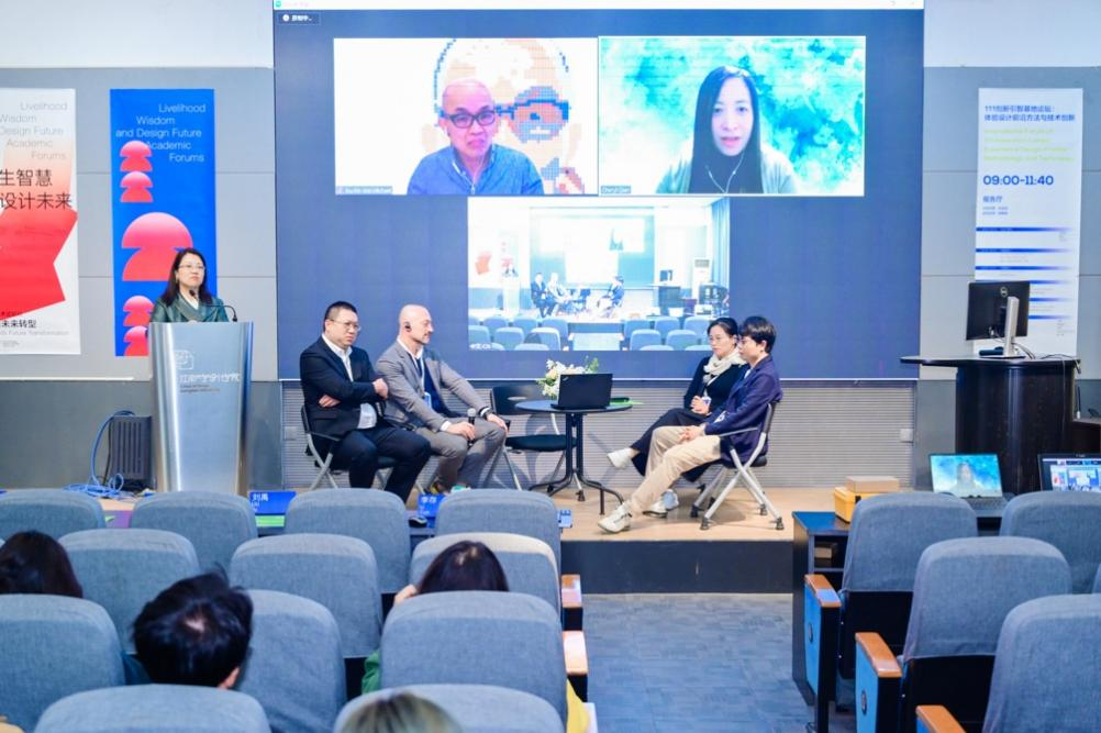 机械工程学院副院长刘禹教授、基地团队成员钱晓波副教授、Gabriele Goretti副教授、李存副教授、陆一晨博士共同进行了圆桌讨论。圆桌论坛从数字服务经济、人与自然的包容性、日常生活新挑战、基于身体动态的可穿戴产品等方面重新审视未来转型中体验设计应当如何与多学科合作,积极主动适应环境、经济和社会多元化变革。