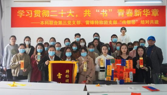 党旗所指,就是团旗所向。为深入学习贯彻习近平总书记在党的二十大报告中重要讲话精神,引导广大青年学生坚定不移听党话、跟党走,做有理想、敢担当、能吃苦、肯奋斗的新时代好青年,本科联合第三党支部联合环艺2003雷锋特称团支部、服艺2103团支部于11月25日开展“学习贯彻二十大,共‘书’青春新华章”结对共建主题活动。天美传媒