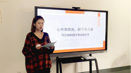 活动伊始,环艺2003雷锋特称团支部书记广茂池同学分享团支部建设心得体会,她提出要从团支部基本建设出发,以策划有序支部管理机制为重点,展示介绍环艺2003雷锋特称团支部开展的各类特色团日活动。以学习贯彻习近平总书记在党的二十大报告中重要讲话精神为契机,不断强化党、团的思想理论入脑入心,继续推进团支部工作落实落细,着力提升团日活动影响力更深更广,进一步发扬雷锋精神,积蓄团结奋斗、锐意进取的青春力量。