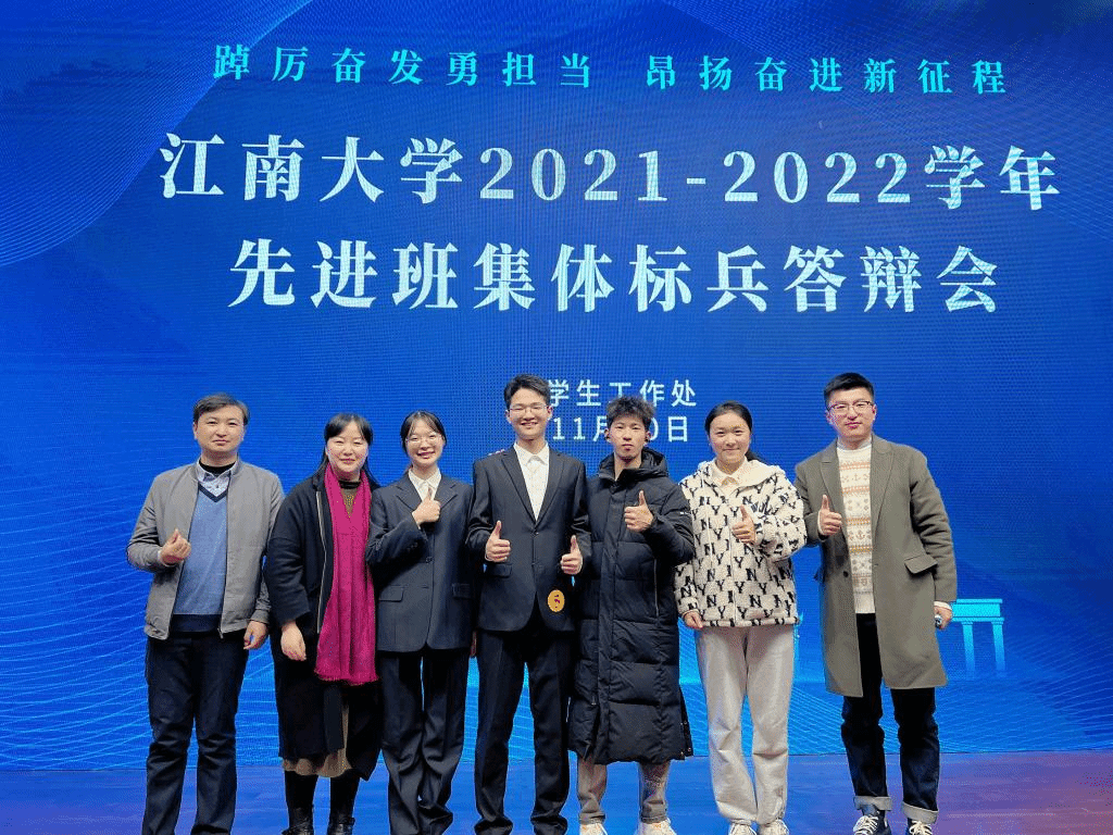 先进班集体”、“五四红旗团支部”等荣誉称号。班级同学将设计与社会责任相结合,举行三次成果展览,用独具魅力的专业实力为国计民生设计温暖与感动。班级平均绩点3.23,CET4优秀率81%、CET6通过率90%,获得国家奖学金2人次,各类奖学金23人次,校级及以上荣誉称号17人次;16人参与大创项目,A、B类学科竞赛获奖17人次;参与抗疫志愿者、无锡市马拉松、无偿献血等各项志愿服务参与记录达到24人次。此外,班级积极组织参与体育活动,创立工业设计篮球联赛JBA。无论是学风建设,思想引领,文体志愿,还是创新实践,班级同学永远踏实稳重,永远认真落实,收获并成长着。