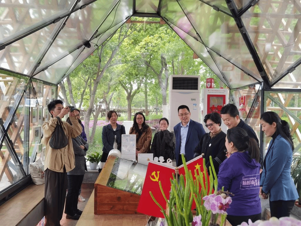 在杨浦滨江党群服务站杨树浦驿站人人屋,认真了解习近平总书记考察调研时的重要指示,通过观看宣传片、红色读物、文化游戏等实地感受全景式基层党建阵地的力量。
