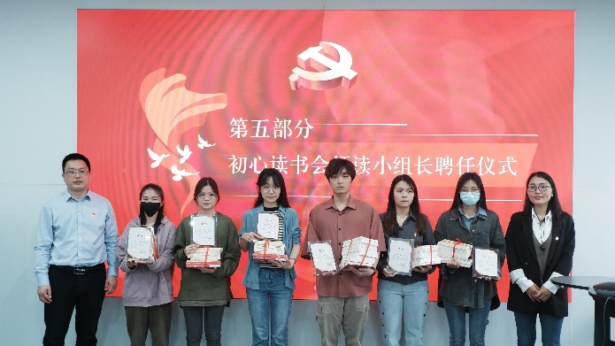 初心读书会共聘任17位学生党支部书记为读书会小组组长,学院党委书记王维青为他们颁发聘书并为支部授书。王书记勉励在场师生,要多读书、读好书,慢慢的把读书变成一种兴趣爱好、一种生活方式、一种人生习惯,就一定能在书中发现“颜如玉”,找到“黄金屋”。组长们也表示接过聘书的那一刻就扛起了一份责任,一定利用好本次读书会的良好契机,不仅带领支部党员,更感召身边更多的人,从经典著作中涵养正气,淬炼思想,升华境界,指导实践。