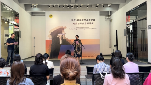 蔡建英在致辞中表示,江苏-韩国高校合作联盟是学校国际交流合作的重要联盟平台,此次苏韩高校联盟设计专项人文学科的系列交流活动,展现了联盟成员高校新锐时尚设计师的价值思考与创新成果,推动双方设计教学科研的互动与学习。