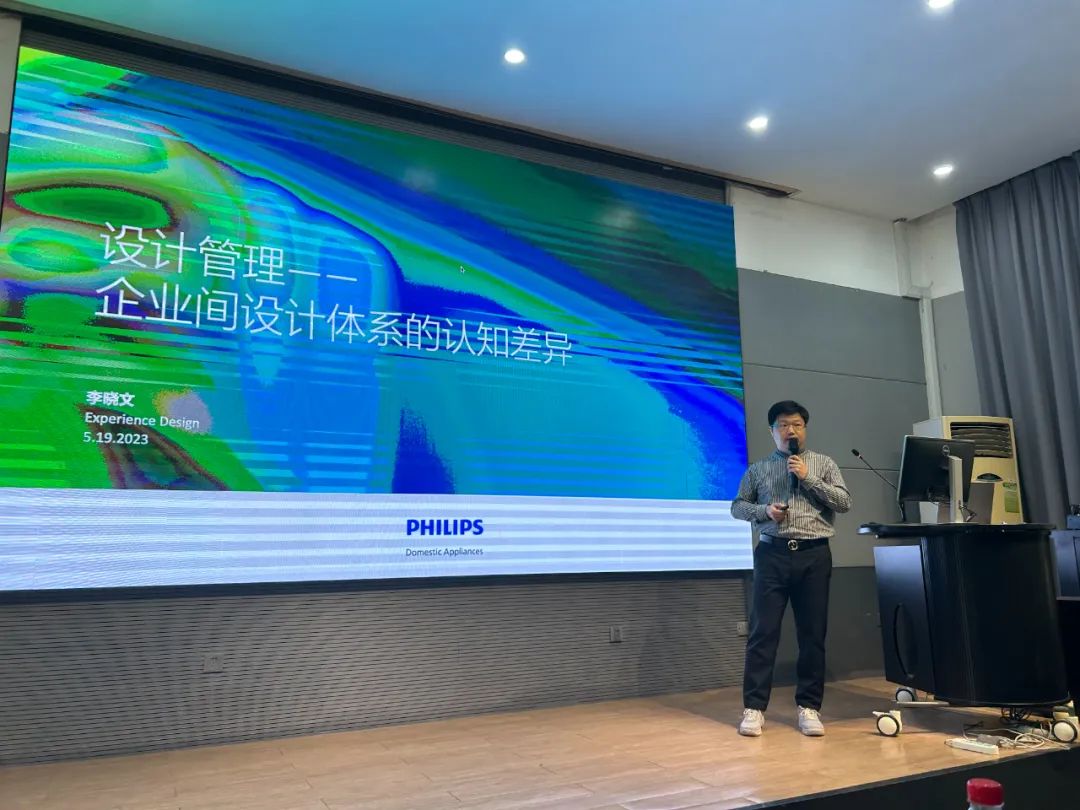 报告厅成功举办。飞利浦家电(中国)投资有限公司总经理王超、飞利浦家电(中国)投资有限公司设计总监李晓文、天美传媒