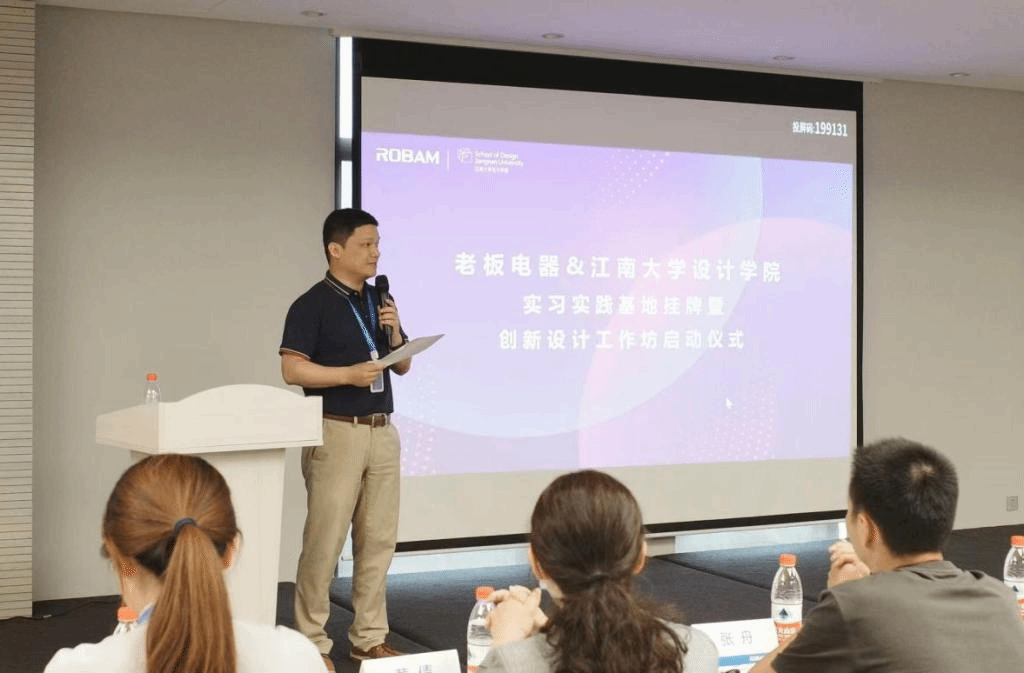 当天下午,工作坊课题发布如期进行。老板电器创新研究院张银峰院长首先介绍了老板电器企业及设计相关的情况。随后由天美传媒