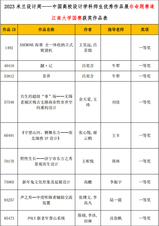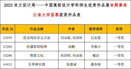 近日,由中国教育国际交流协会、中国高等教育学会联合主办,中国教育国际交流协会承办的第七届“米兰设计周——中国高校设计学科师生优秀作品展”国赛获奖名单正式公布,设计学子的参赛作品脱颖而出,成功斩获一等奖31项,二等奖22项,三等奖44项,实现了在该项赛事中的历史性突破,赛事组委会向学校发来获奖函表示祝贺。