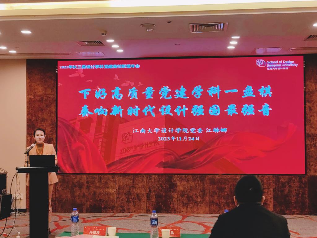 参会的联盟高校还围绕“党建引领促发展 培根铸魂育新人”主题进行了落实高校设计学科立德树人根本任务典型事迹交流。江琳娜副书记代表我院向大会作了题为“下好高质量党建学科一盘棋 奏响新时代设计强国最强音”的主旨报告。她强调,未来,学院将继续坚定“设计为人民服务”的理念与各联盟兄弟高校一起立足“大党建”工作格局,充分凝聚长三角一体化发展的文化力量和学科特色,以高质量党建引领一流学科高质量发展的“江南答卷”回应“强国有我”的责任担当,努力培养出能够引领中国未来发展的设计力量。