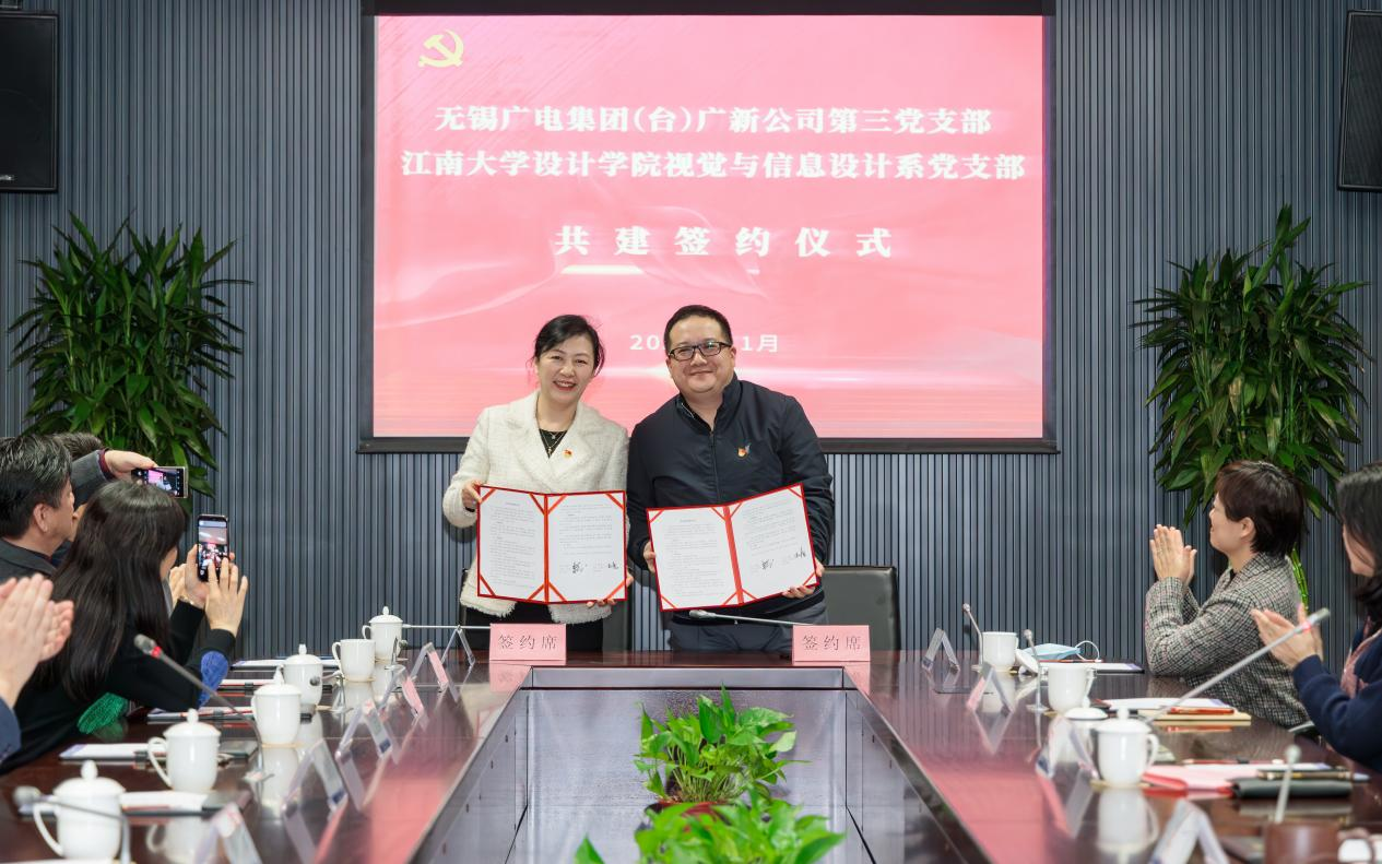 视觉与信息设计系党支部与无锡广播电视集团(台)广新影视动画技术有限公司第三党支部共建签约仪式在无锡广电传媒中心举行。校发展规划与学科建设处处长刘飞,天美传媒